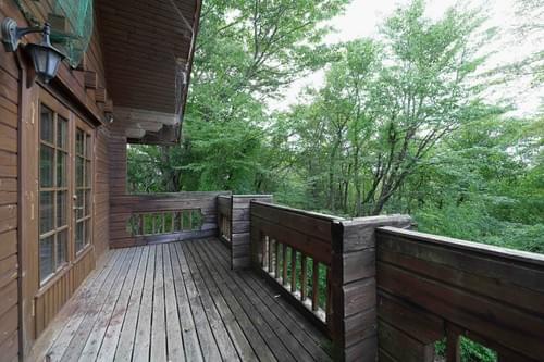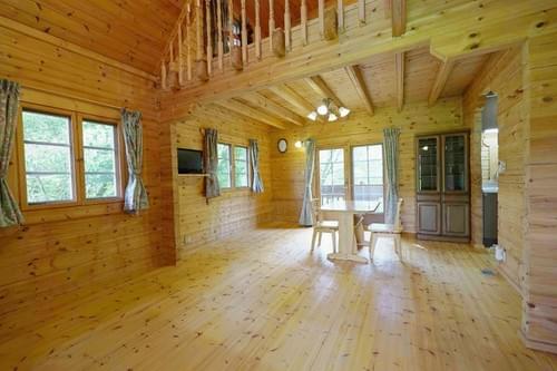 ◻︎H-2-126◻︎620万円◻︎緑豊かな自然に囲まれた、木の温もりあふれるログハウス別荘。朝の光を浴びながら、バルコニーでコーヒーを楽しむ贅沢な時間が待っています。